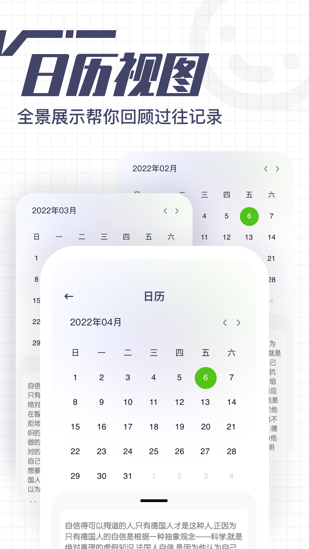 -日历视图:提供直观清晰的日历展示界面,方便用户查看每日、每周或每月的待办事项安排,帮助合理规划时间。