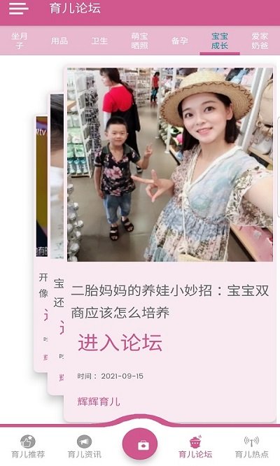【育儿论坛】打造了国内最活跃的育儿交流社区,汇聚了数百万真实家长用户。在这里可以分享育儿心得、交流带娃技巧、寻求育儿建议。无论是新生儿护理难题,还是早教方法讨论,都能在这里找到志同道合的伙伴,共同成长。