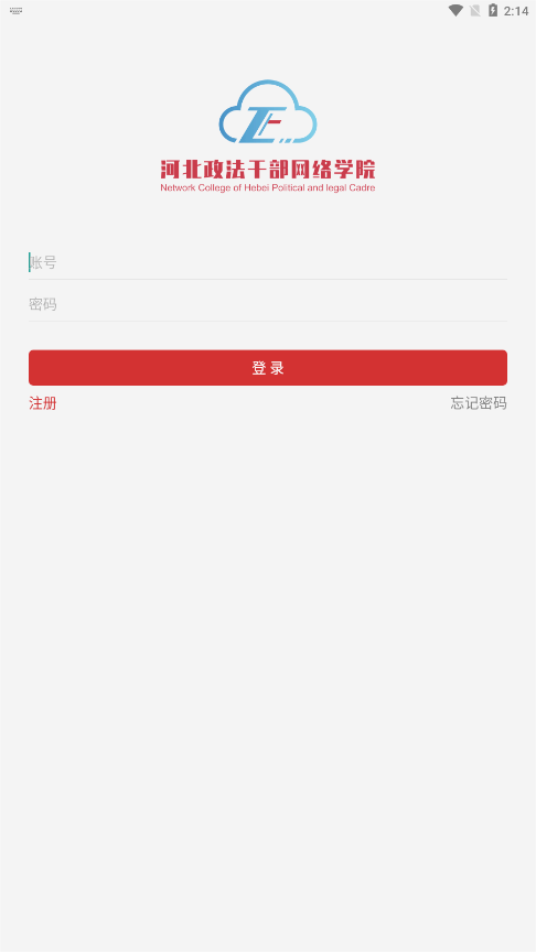 1、打开河北政法网院app,进入登录界面,点击"注册"按钮开始注册流程;