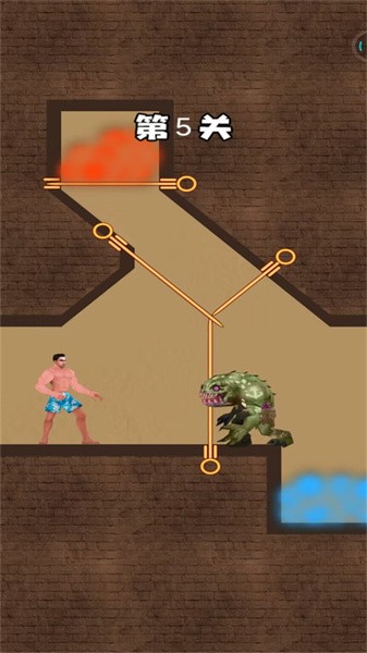 1.游戏核心玩法是拉针解谜,玩家需要仔细观察场景布局,分析机关之间的联动关系,按照正确顺序拔出铁棍来解救被困的花裤衩。看似简单的操作背后隐藏着精妙的物理机制,每个关卡都需要玩家开动脑筋才能找到最佳解法。
