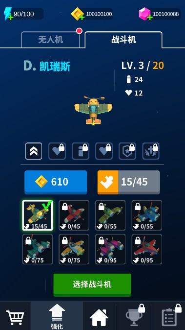 1.商店系统功能强大,不仅提供各种强化材料和改装零件,还能对战机进行深度定制,包括武器系统升级、装甲强化等,让你的战机在战场上所向披靡;2.独特的星级评价系统让每次通关都充满成就感,达到特定条件后可以解锁隐藏的传奇战机模型,这些稀有战机拥有惊人的属性和特殊技能;3.实时更新的全球排行榜让竞争更加激烈,系统会记录每位玩家的最佳成绩,你可以随时查看自己在全国乃至全球的排名情况,挑战更高的名次。