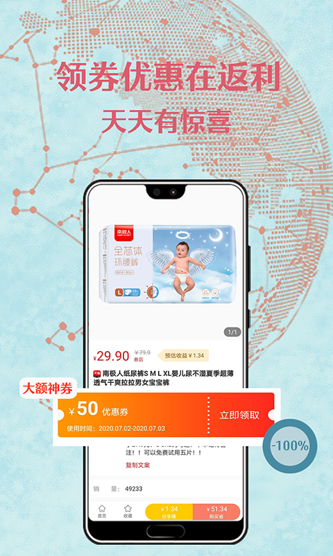 一键轻松购物:平台采用极简设计,让购物变得前所未有的简单快捷。零投资、零成本、零门槛的运营模式,让每个人都能轻松参与。全领域全覆盖的商品供应链,确保您能找到所需的一切。与各大知名电商平台的深度合作,为您提供最优质的商品选择。超高购物返佣政策让您每次购物都能获得额外收益,同类平台中返佣金额最高,每日更新百万级优惠商品。