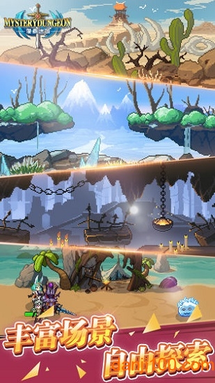游戏采用轻松休闲的放置玩法,告别伤肝的重复操作,让玩家重温经典游戏的乐趣。复古像素画风搭配自动挂机系统,让冒险变得更加轻松惬意。游戏提供丰富的装备系统,玩家可以随心更换搭配,打造个性化战斗风格。多样化的技能组合,配合宝石、卷轴等道具系统,为战斗带来无限可能。现在,神秘的地下城已经开启,勇敢的冒险者们,准备好迎接挑战了吗?快来加入这场史诗般的冒险之旅吧!