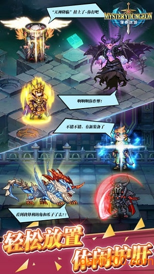 1、游戏精心设计了四个特色鲜明的勇者职业,搭配数百件装备、武器和技能组合。玩家需要在地下城中不断探索,收集各种强力道具,打造专属战斗风格;
