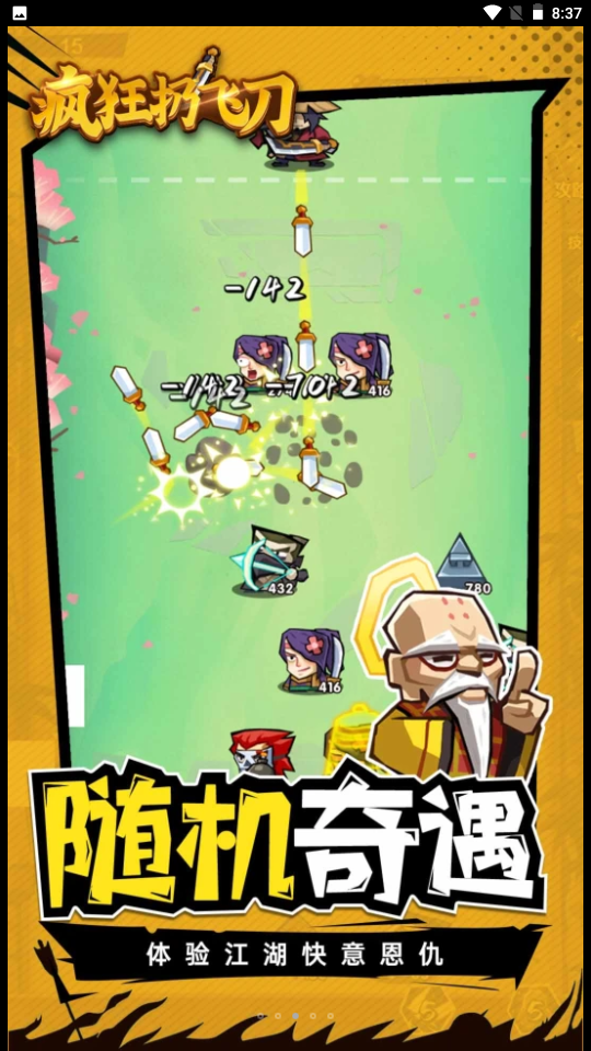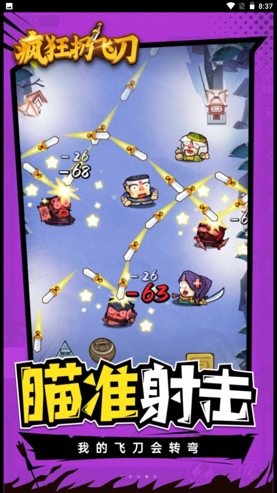 《疯狂扔飞刀》是一款以弹射飞刀为核心玩法的动作闯关游戏,玩家将扮演一位初入江湖的侠客,凭借精准的飞刀技艺挑战各路强敌。游戏融合了roguelike元素与武侠题材,通过独特的弹射机制让战斗充满策略性。你需要巧妙利用墙壁反弹、角度计算等技巧,对敌人发起致命打击。随着关卡推进,不仅能解锁不同风格的飞刀和角色,还能习得绝世武功,从无名小卒逐步成长为威震武林的大侠。简洁明快的画风搭配爽快的战斗节奏,带来既休闲又刺激的游戏体验。