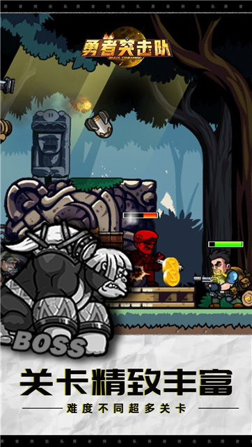 1.勇者突击队将Q萌可爱的角色造型与紧张刺激的射击玩法完美结合,玩家将化身勇敢的战士,在充满挑战的关卡中展开冒险。游戏采用独特的卡通渲染技术,让战斗场景既生动有趣又不失视觉冲击力。