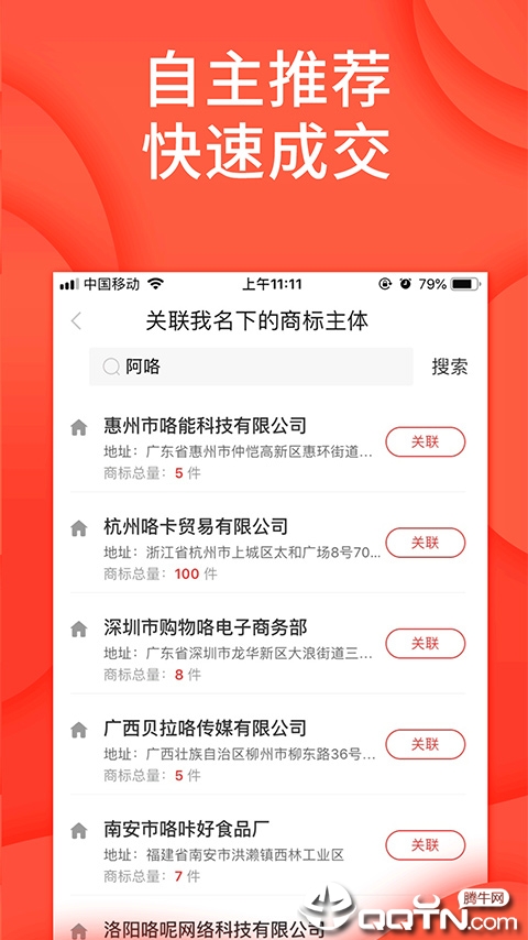1、在线查询功能全面覆盖商标管理各环节:支持精确查询商标注册信息、注册号核验、已注册商标比对等基础服务,同时提供商标公告订阅和注册进度跟踪等增值服务。独创的智能检索算法可自动匹配相似商标,预警注册风险。2、交易系统构建完整商业闭环:除基础的商标买卖、转让功能外,还提供估值参考、交易撮合、资金担保等特色服务。系统内置智能推荐引擎,可根据用户浏览习惯精准推送潜在交易对象,大幅提升商标流转效率。所有交易数据均通过区块链存证,确保交易安全可追溯。