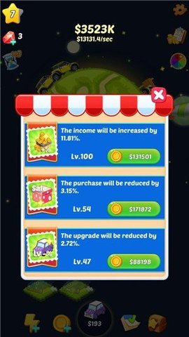 你需要将两辆普通车组合在一起才能得到一辆豪华车,而每一辆车都可以为玩家赚到很多钱。