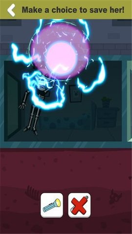你必须想办法帮她摆脱困境,仔细观察现场并选择合适的道具。