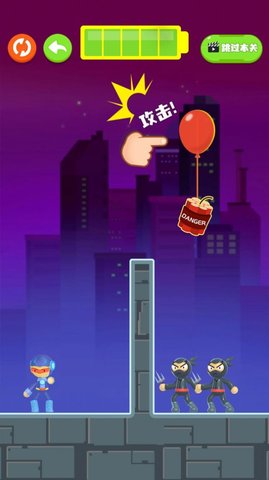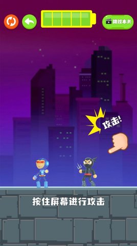 操作简单,你只需要按一下手指就可以攻击敌人,打败敌人就可以完成通关。