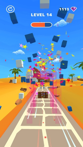 跑道上障碍物较多,容易出现,玩家需要避免它们,否则会失败。