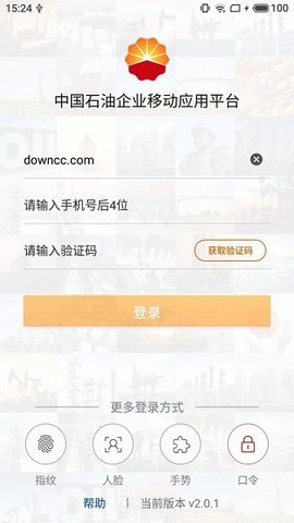 中国石油企业移动应用平台集成统一身份2.0系统,支持员工号登录认证,全新指纹、人脸、手势认证支持。
