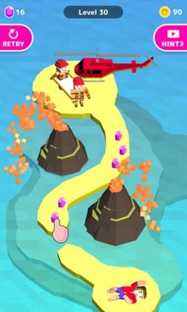 救救大叔的核心玩法是建立一条避免障碍的路径,快送前往就医。
