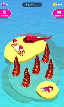 现在你是救援队的一员了,这里有一个受伤的叔叔,但他在一个荒岛上。