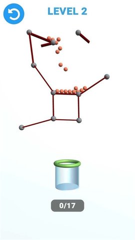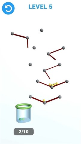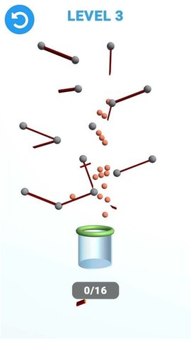 当所有小球落入最低的罐子时,玩家将通过测试,否则需要重新开始。