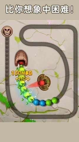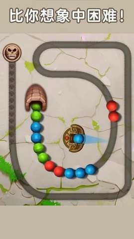 祖玛经典玩法,可以完全消除三个相同颜色的球。