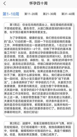 孕周提醒:帮助孕妇管理怀孕40周内的重要事件,并根据孕期变化提供产前教育、饮食、运动、心理等孕期知识。