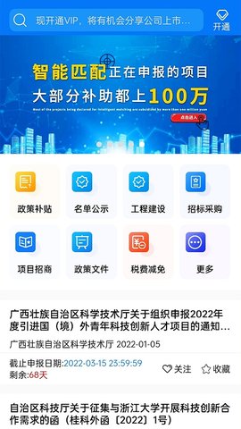 高优先级显示项目应用信息,帮助企业“及时、全面”获取每年数十万至数千万的政府政策资金和资源.高效稳定