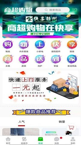 以便捷市场、本地商城、送货上门为民生服务、为跑腿、送餐为便民特色