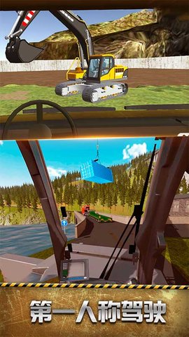 第一人称视角具有很强的沉浸感,令人震撼的3D施工环境,真实模拟重碎片运输。