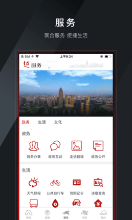 同时用户还可以通过该软件在线处理各种政务,了解身边新闻,了解状态动态
