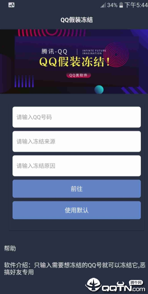 1.首先在应用商店下载安装QQ假装恶搞冻结app,安装完成后点击图标启动程序。软件体积小巧,不会占用过多手机内存,启动速度也很快。