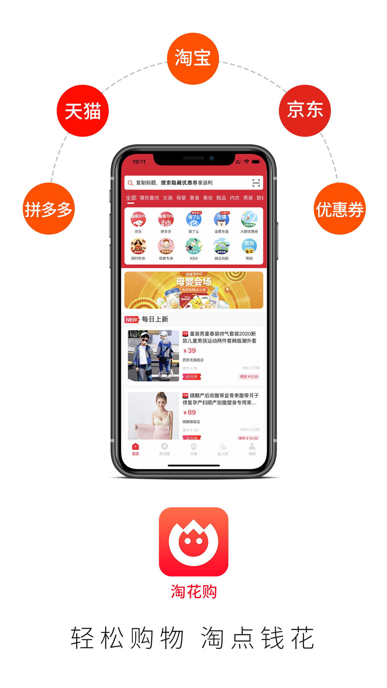 2、淘花购提供淘宝、天猫、京东、拼多多的海量商品券,通过淘花购去购物,不仅可以领取隐藏优惠券,还可以获得佣金,一年轻松省下一部手机钱!平台每天更新上万款特价商品,涵盖服饰、家电、食品等全品类,满足不同用户的购物需求。