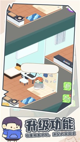 1,游戏采用独特的Q版卡通风格,每个角色和建筑都充满萌趣。玩家将从一间普通公寓开始经营,通过合理定价、装修升级等方式吸引租客,逐步积累财富。随着游戏进程,你可以解锁更多特色房型,从单身公寓到豪华别墅应有尽有。每个租客都有独特的性格和需求,与他们互动会触发各种有趣事件,让经营过程充满惊喜。