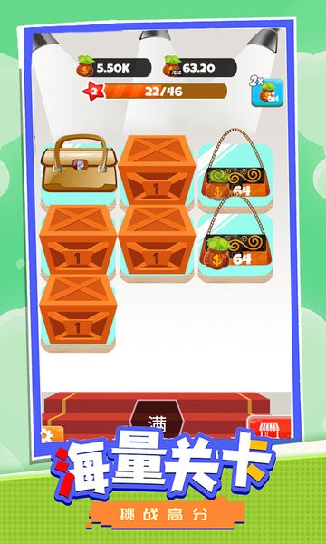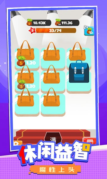 游戏提供精彩纷呈的数字闯关体验,每天登录都能收获不同的惊喜礼包。随着等级的提升,你将解锁更多高级玩法和特殊奖励。在闯关过程中,合成更多包包是通关的关键,这需要你发挥策略思维。每日任务系统让你在休闲娱乐的同时,还能获得丰厚的成长资源。游戏融合了解谜冒险元素,每次游玩都能积累宝贵经验。通过不断思考和尝试,你将掌握更多解谜技巧,轻松应对各种挑战关卡。丰富多样的道具系统,让你可以更高效地完成闯关任务,体验更多游戏乐趣。