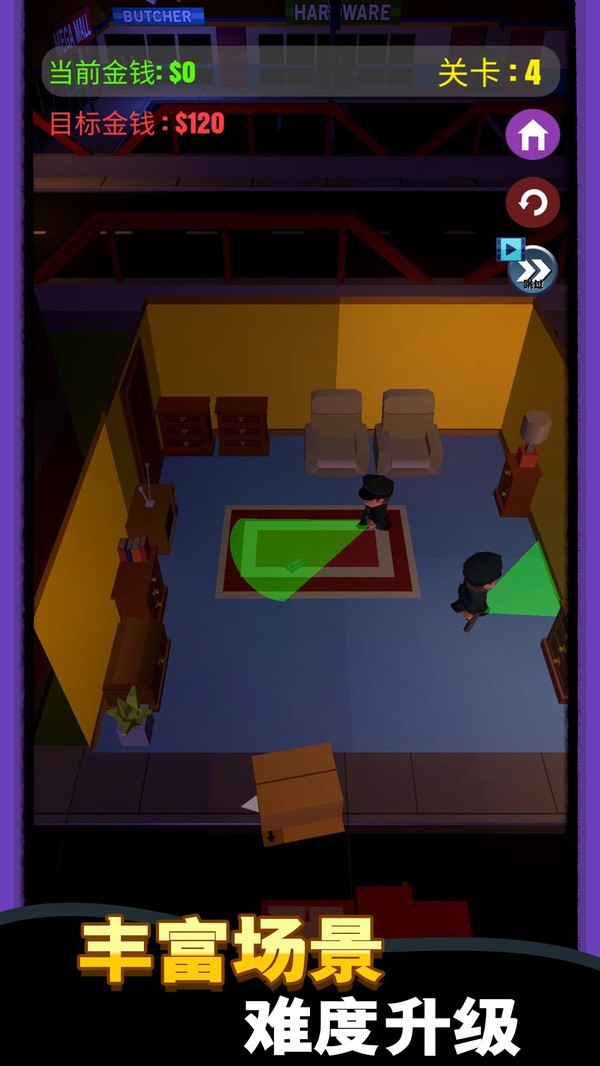 游戏提供了丰富的资源收集系统,玩家可以在各个场景中搜寻特殊材料,这些材料不仅能提升角色能力,还能解锁隐藏道具。随着游戏进程推进,玩家将获得更多强化技能的机会,使闯关过程更加顺畅高效。每个关卡都经过精心设计,任务目标各具特色,玩家需要善用百宝箱中的各类宝石来应对不同挑战。寻找钥匙的环节特别考验玩家的观察能力,需要仔细搜索房间每个角落,同时还要避开巡逻的守卫,为游戏增添了更多策略性元素。