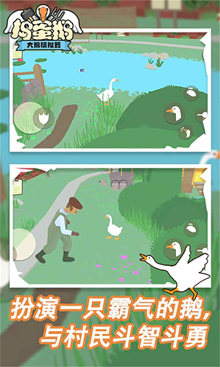 1、控制这只可爱的鹅来恶作剧!游戏采用清新明亮的卡通风格,让原本调皮捣蛋的行为都显得格外有趣。玩家可以尽情发挥想象力,用各种方式捉弄村民,比如偷走他们的帽子、打翻晾晒的衣服,或是突然发出叫声吓人一跳。轻松愉快的操作方式让每个玩家都能快速上手,享受纯粹的快乐。