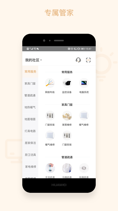【居家服务】:业主在家就能通过手机预约各类物业服务,包括维修、保洁、家政等,无需亲自前往物业中心。系统采用简洁直观的操作界面,让各个年龄段的用户都能轻松上手,享受更贴心、更人性化的服务体验。