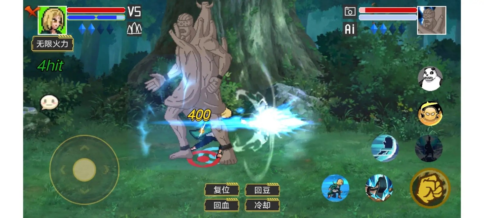 3、复古像素风格,引入动漫中的各种场景,众多动漫角色可供自由选择,开启畅爽的街机战斗。从木叶村到终末之谷,每个场景都完美还原了动漫经典。