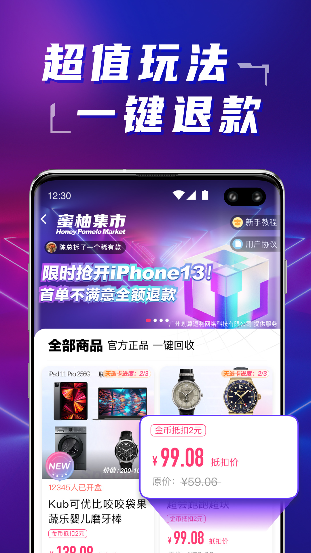 蜜柚集市将购物与游戏完美结合,创新的任务系统和金币奖励机制让用户边玩边省。平台承诺15秒极速退款,资金原路返回,保障用户权益。智能算法会根据用户历史订单优化推荐,提高满意度。