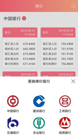 列出各大银行的价格,包括主流银行的实时价格信息;