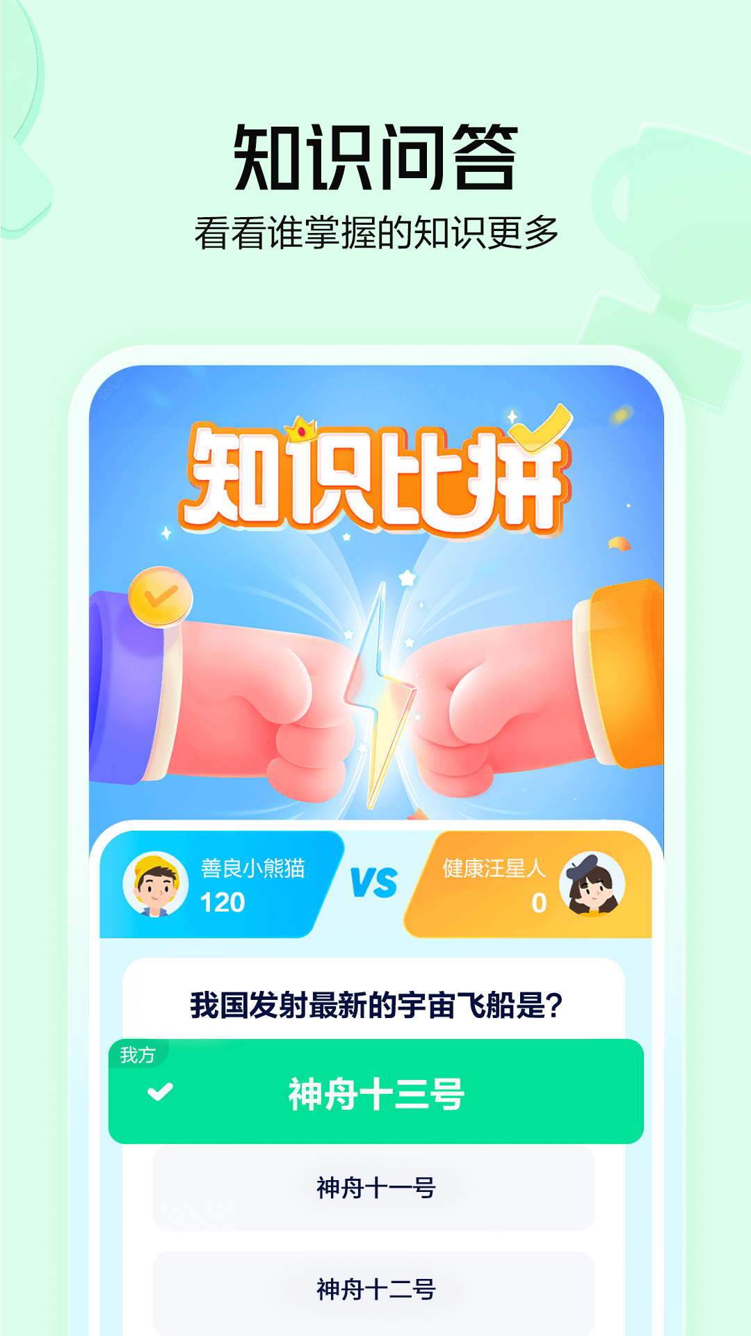 1、【知识比拼】每个知识合集都提供互动问答,增强获知感,更好地帮助青少年吸收、理解知识,寓教于乐中激发求知欲。系统会根据答题情况智能调整难度,并生成专属学习报告,帮助用户了解知识掌握程度。每周还会举办知识竞赛,让学习充满挑战和乐趣。