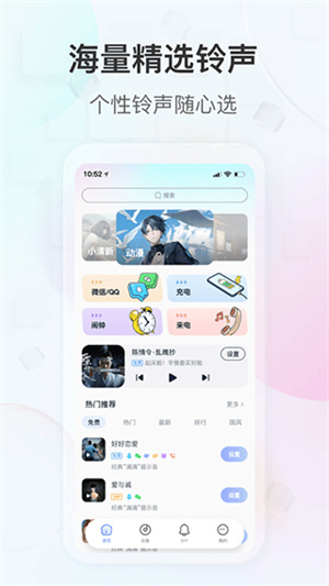 1、操作界面简洁明了,即使是初次使用的用户也能快速上手,三步骤完成铃声设置;2、拥有20+分类的铃声库,包含影视金曲、网络热歌、ASMR等特色内容,每日新增资源超过100个;3、支持深度自定义功能,用户可以通过录音、音乐剪辑等方式制作完全个人化的铃声;4、独创的"智能匹配"算法,能根据用户听歌习惯推荐符合口味的铃声,省去搜索时间。