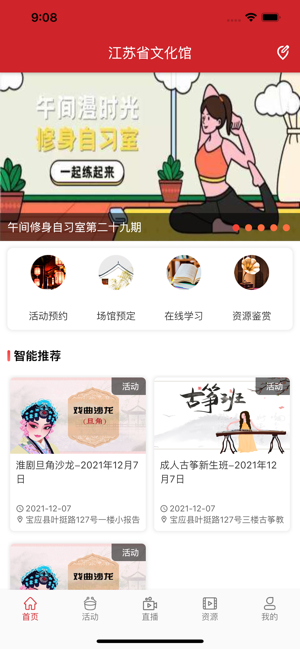 场馆预订:提供剧场、练舞房、琴房、培训室、多功能厅等多种类型场地预约服务,所有公益场地均可通过手机一键预约,操作简单便捷。