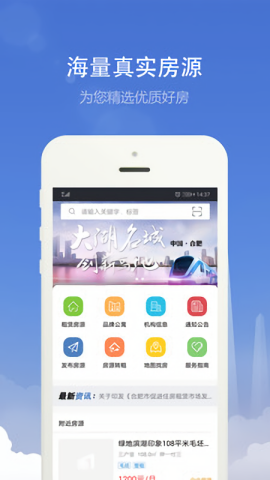 1、海量真实房源,为您精选优质好房。平台每日更新超万套房源信息,涵盖合肥各行政区热门地段,从精装公寓到学区房应有尽有,每套房源均配备360°全景看房功能,用户可直观了解房屋细节。2、安全咨询免骚扰,虚拟电话,安全方便。独创的隐私通话系统能有效拦截中介骚扰,用户可通过临时号码与房东沟通,交易完成后自动失效,全面保护个人信息安全。3、地图找房体验,定位附近房源,满足您的需求。智能地图支持地铁沿线、学校周边等20余种生活圈筛选,实时显示房源与周边商超、医院的直线距离,助您快速评估生活便利度。4、足不出户在线租房,品牌公寓,品质生活。与龙湖冠寓、万科泊寓等30余家品牌公寓达成战略合作,提供标准化服务套餐,新用户可享专属搬家优惠券。