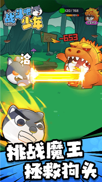 战斗吧少年是一款集搞笑与策略于一体的休闲手游。游戏中的所有英雄角色都是极具魔性的狗头表情包,每个角色不仅造型独特,还拥有完全不同的攻击方式和技能效果。玩家需要根据敌人的特点,合理搭配阵容,才能在冒险旅程中取得胜利。游戏采用明亮的卡通画风,配合夸张搞笑的音效,让玩家在战斗过程中忍俊不禁。无论是角色动作还是战斗特效,都充满了无厘头的喜感,为玩家带来全新的游戏体验。