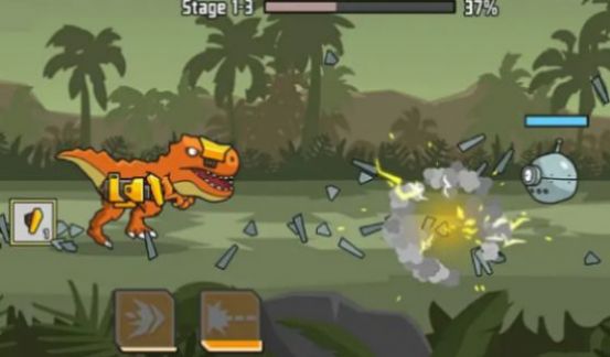 《霸王龙vs机器人CyberDino》是一款充满未来科技感的横版动作冒险游戏,玩家将操控一只经过高科技改造的赛博恐龙,与入侵地球的外星机器人展开激烈对决。游戏采用经典的横向卷轴玩法,结合了快节奏的战斗系统和丰富的装备升级机制。在游戏中,你需要运用霸王龙强大的攻击能力和特殊技能,击败一波又一波的机械敌人,包括各种强大的精英怪和终极Boss。每次战斗胜利后,你可以收集战利品来打造更先进的武器和装甲,不断提升自己的战斗力。游戏画面炫酷,操作流畅,带给玩家酣畅淋漓的战斗体验。