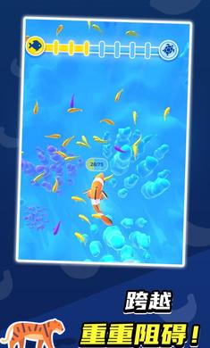 2、鱼类进化阶段:当体型达到一定规模后,生物将进入鱼类形态。这个阶段包含50个关卡,玩家可以发展出鱼鳍、鳃等器官,并开始尝试更复杂的捕食策略。需要特别注意躲避大型掠食者的攻击。