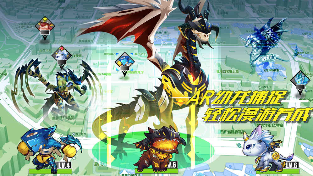 实时地图搜索结合GPS定位功能,玩家可以在真实城市中探索隐藏的龙类栖息地,不同地域会出现专属物种。天气系统也会影响捕捉成功率,雨天水系龙出现概率大幅提升。