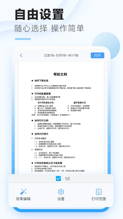 软件采用智能打印技术,只需通过蓝牙连接对应设备,开启蓝牙开关即可快速完成打印任务。内置丰富的模板管理系统,提供多种专业打印模板,让文档排版更加高效美观。支持多种打印模式自由切换,包括普通打印、照片打印、票据打印等,满足不同场景需求。特别设计的智能对接模式,可以自动识别最佳打印参数,确保每次打印都能获得理想效果。