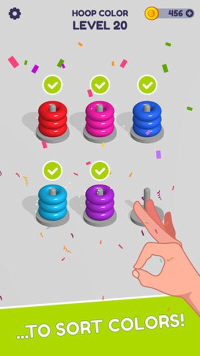 2、快乐叠圈圈中文版游戏的难度由易到难,不断提升的关卡难度等级极具挑战。新手引导系统完善,让玩家快速上手基础操作。随着技能提升,关卡设计越来越精巧,需要综合运用多种技巧才能通关,满足不同水平玩家的需求。