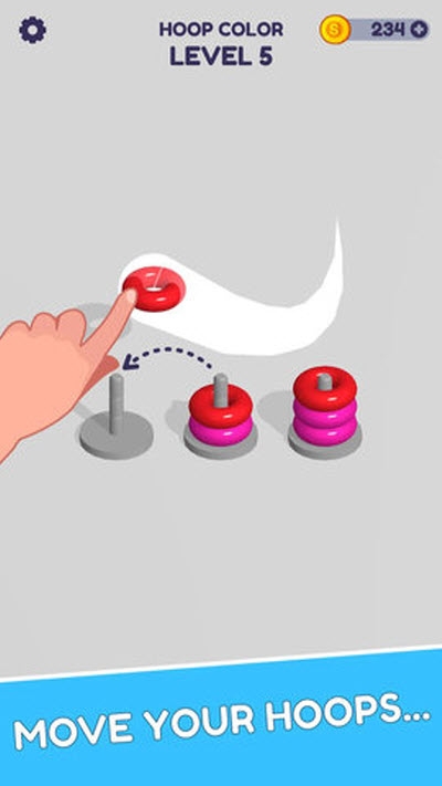 2、快乐叠圈圈中文版任何一个步骤都很关键,才能轻松过关,解锁新的关卡挑战。游戏强调精准操作,每一步移动都影响最终结果。前期的小失误可能导致后期难以弥补,因此需要全神贯注,谨慎规划每个动作,才能顺利开启后续更有趣的关卡。