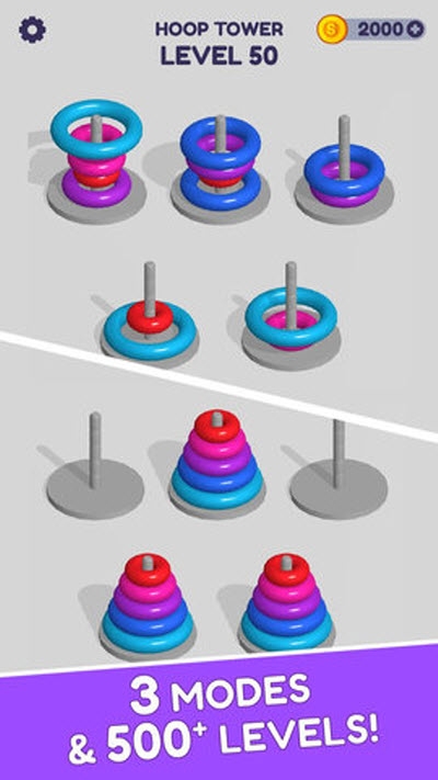 快乐叠圈圈中文版以上的立柱作为中转站来进行互相调度,合理的将颜色相同的圈都放在一起。简约清爽的主题画风下也会给玩家带来超多精彩趣味的关卡挑战,当你掌握一定规律和技巧之后就可以轻松自如的完成所有挑战关卡。按照自己计划的步骤来完成游戏的关卡挑战。游戏比较考验玩家的逻辑思维能力,玩家需要利用好场景中多余的立柱来做一个周转。游戏还设置了多种特殊道具,如时间暂停、提示功能等,在关键时刻助你一臂之力。随着游戏深入,还会解锁隐藏关卡和限时挑战模式,带来更多新鲜体验。