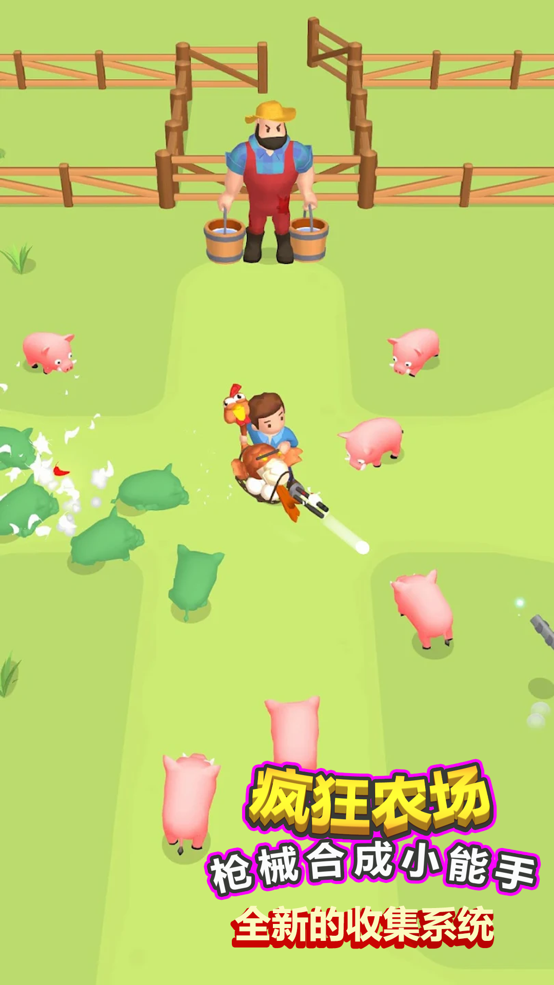 《疯狂枪械合成大师》是一款充满创意与刺激的合成射击游戏,玩家将扮演一名捣蛋鬼,在农场中展开一场疯狂的冒险。通过不断合成各种枪支武器,你可以解锁更强大的装备,喷射敌人并探索更多有趣的地图。游戏不仅考验你的策略与反应能力,还需要小心躲避农场主人的追捕。独特的彩弹枪玩法让你能用颜色标记敌人,而丰富的场景互动机制则让战斗充满变数。无论是破坏家具还是收集隐藏武器,每一刻都充满惊喜与挑战,快来体验这场疯狂的农场枪械大战吧!