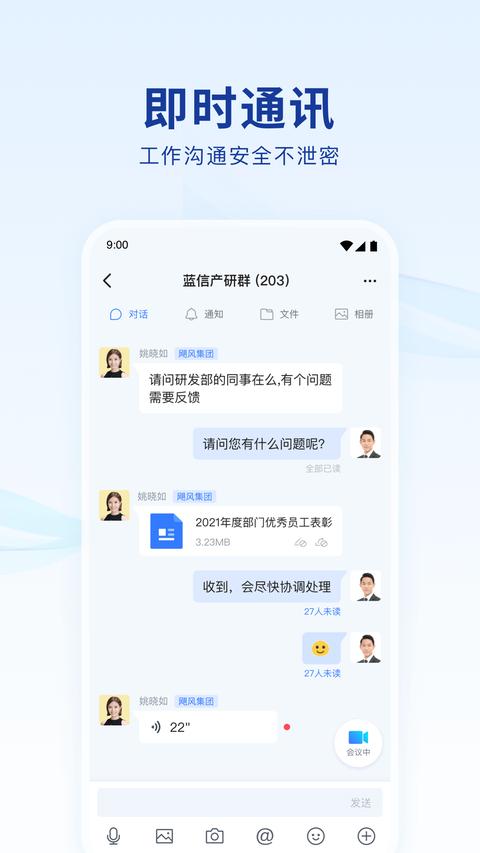 +官方下载app是一款专为大型组织与政府机构打造的安全移动工作平台,集即时通讯、协同办公、数据管理于一体。通过端到端PaaS服务与统一数据平台,蓝信+实现了组织内外业务的高效连接,提供公有云、私有云等多种部署方案,满足不同层级的安全需求。其模块化设计覆盖文化学习、人力资源、应急指挥等20+场景,并支持万人级直播、300方电话会议等企业级功能,助力政企客户实现数字化转型。