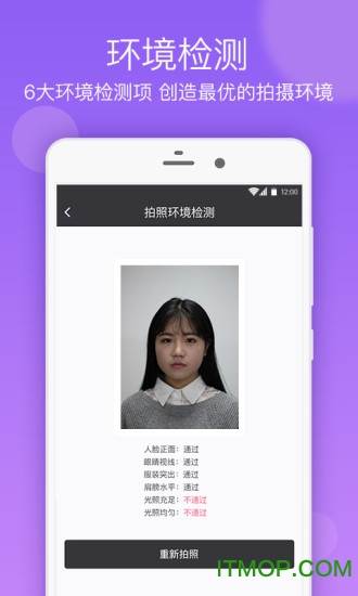 软件采用严格的拍摄环境检测系统,从多个维度确保证件照质量。检测项目包括人脸姿态是否端正、眼睛视线是否正确、双眼是否水平、服装是否突出、肩膀是否水平、光照是否充足均匀等。通过全方位的检测指导,帮助用户拍摄出完全符合要求的证件照片,避免因照片不合格导致的重复拍摄问题。